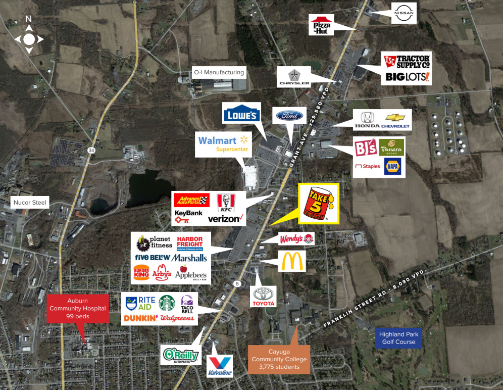 Auburn, NY – Quattro Development acquires a .56 acre parcel of land at 232 Grant Avenue Auburn, NY 13021 and builds a 1,324 square foot building for Take 5 Oil Change. Nearby retail includes Walmart, Lowe’s, Aldi, Planet Fitness, and Panera.