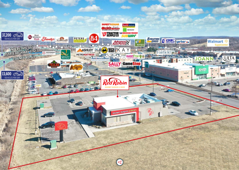 Horseheads, NY – Quattro Development acquires an existing 4,402 square foot Red Robin on a 2.22 acre parcel at 1720 County Route 64, Horseheads, NY 14845.  Quattro intends to subdivide off a .8026 acres parcel of land with intentions of building a second building.